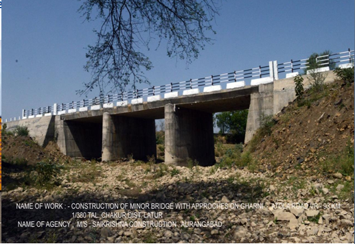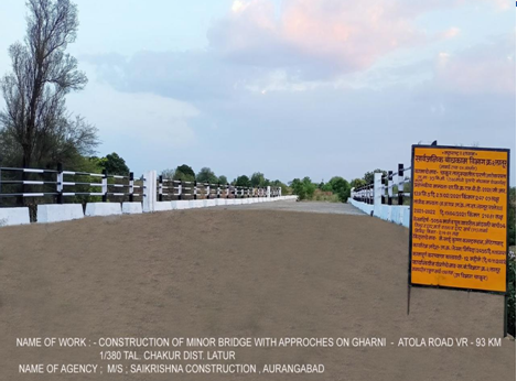 SaiKrishna Construction proudly completed the construction of a 30-meter minor bridge on the Gharni–Atola Road (VR–93) at Km 1/380, located near Chakur in the Latur district. This critical infrastructure project was undertaken for the Public Works Division No. 2, Latur, with the goal of improving connectivity, ensuring safer transportation, and enhancing rural development in the region.